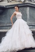 Gericht Schleppe Extravagantes Schick Brautkleid aus Spitze mit Bordüre