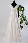 A-Linie Boot-Ausschnitt Tüll Sittsames Brautkleid mit Gericht Schleppe