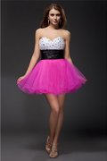 Ärmelloses Normale Taille Tüll Ein Schulter Mini Cocktailkleid
