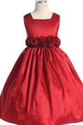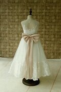 Ärmellos Empire Quadrat Ausschnitt A-Linie Blumenmädchenkleid mit Schmetterlingsknoten