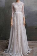 Langärmeliges Duchesse-Linie Gericht Schleppe Brautkleid aus Tüll mit V-Ausschnitt