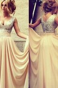 Ärmelloses Chiffon Plissiertes Prinzessin Abendkleid mit Empire Taille