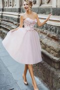 Sweep Zug Trägerlos Sittsames Pompöse Ballkleid mit Mitte Rücken