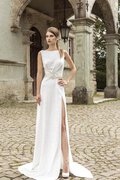 A-Linie Beach Stil Plissiertes Besonderes Brautkleid mit Perlengürtel