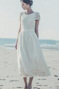 Dreiviertel Länge Ärmeln Chiffon A-Line Knielanges Brautkleid mit Reißverschluss