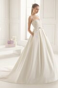 Satin A-Line Perlenbesetztes Klassisches Bescheidenes Brautkleid