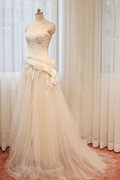 V-Ausschnitt plissiertes Schlichtes Brautkleid mit Applikation mit Bordüre