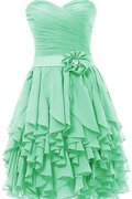 Gerüschtes V-Ausschnitt Ärmelloses Natürliche Taile Knielanges Ballkleid