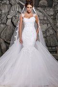 A Linie Luxus Konservatives Brautkleid mit Bordüre aus Tüll