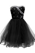 Reißverschluss Herz-Ausschnitt A-Linie Perlenbesetztes Kurzes Cocktailkleid