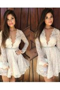 3 /4 Länge Ärmeln Gerüschtes A-Linie Knielanges Cocktailkleid mit V-Ausschnitt