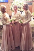 V-Ausschnitt Rückenfreies Sweep Train Anständiges Ballkleid ohne Ärmeln