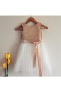 Ärmellos A Linie Anständiges Blumenmädchenkleid mit Schleife mit Gürtel