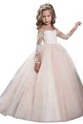 Halbe Ärmeln Ärmellos Schaufel-Ausschnitt Tüll Bodenlanges Blumenmädchenkleid