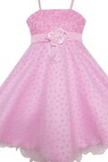 Plissiertes Empire Taille Ärmellos Blumenmädchenkleid mit Feder mit Blume
