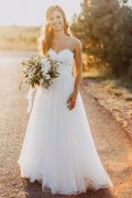 Sweep Zug Ärmelloses schulterfrei Brautkleid mit Bordüre mit natürlicher Taille