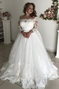 Natürliche Taile Juwel Ausschnitt XXL Bodenlanges Brautkleid mit Bordüre