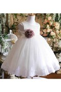 V-Ausschnitt Tüll A-Line Natürliche Taile Bodenlanges Blumenmädchenkleid