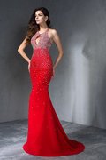 Chiffon Ärmelloses Perlenbesetztes Prinzessin A-Line Abendkleid