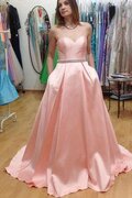 A-Linie Plissiertes Sweep Zug Satin Ballkleid mit Bordüre
