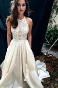 A-Line Prinzessin Kurzes Brautkleid aus Satin ohne Ärmeln