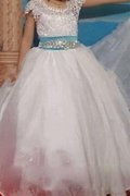 Halbe Ärmeln Ärmellos Schaufel-Ausschnitt Tüll Bodenlanges Blumenmädchenkleid